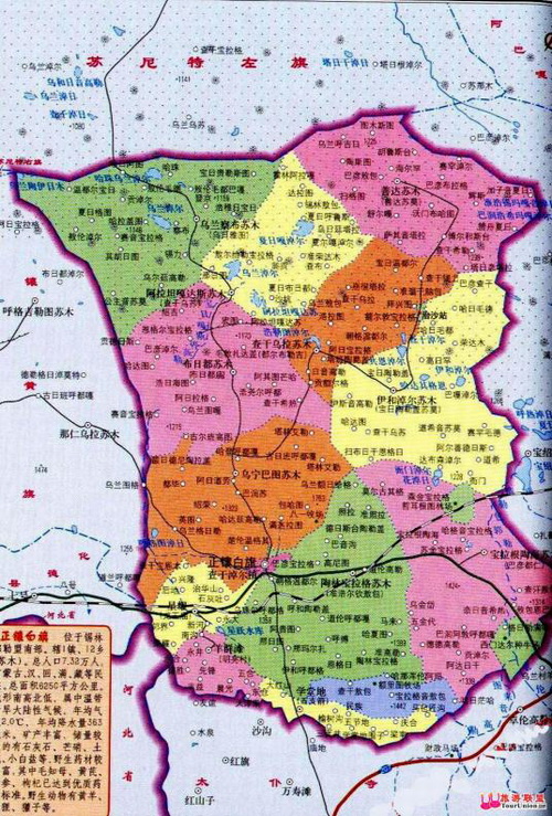 正镶白旗,海拔高度在1200~1400米之间,最高海拔1776米,北部为浑善达克沙地,中南部为低山丘陵草原。由于地貌不同,地理环境多姿多彩。全旗南北长112公里,东西宽88公里,总土地面积6253平方公里。南邻京津冀发达地区,背靠大草原,东西连接蒙东蒙西经济区,是内蒙古自治区距环渤海经济圈最近的地区之一。