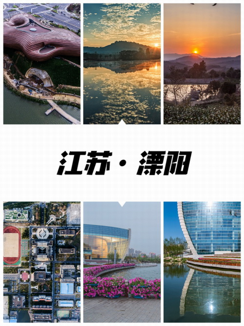 (概述图依次为:溧阳博物馆、天目湖国家湿地公园、南山、溧阳市开放大学、雁湖、溧阳市文化艺术中心)