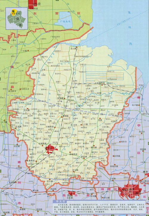 寿光市,山东省辖县级市,由潍坊市代管,位于山东省中北部,潍坊西北部,渤海莱州湾西南岸,总面积2072平方千米。下辖5个街道、9个镇。