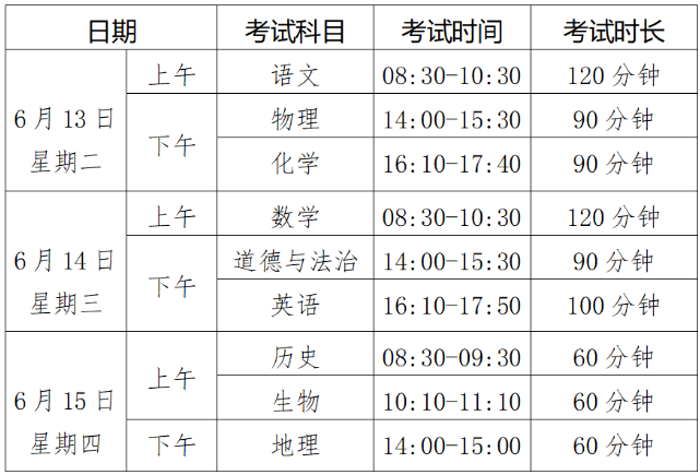 山东烟台中考时间2023年具体时间安排在6月13日至15日,具体安排如下表: