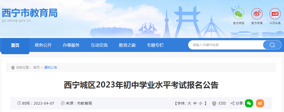 原文标题:西宁城区2023年初中学业水平考试报名公告