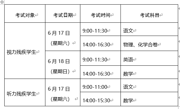 (二)2023年特殊教育初中学业水平考试时间安排