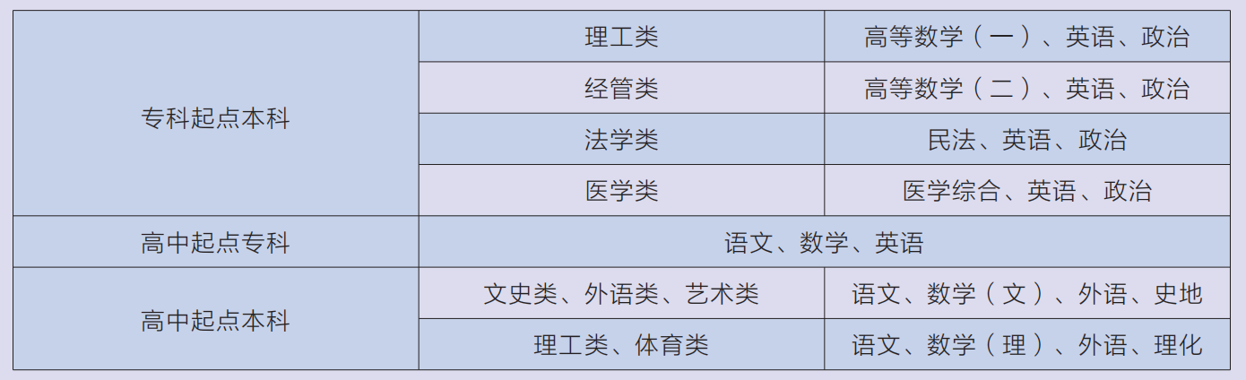 六、全国成人高考统一考试科目