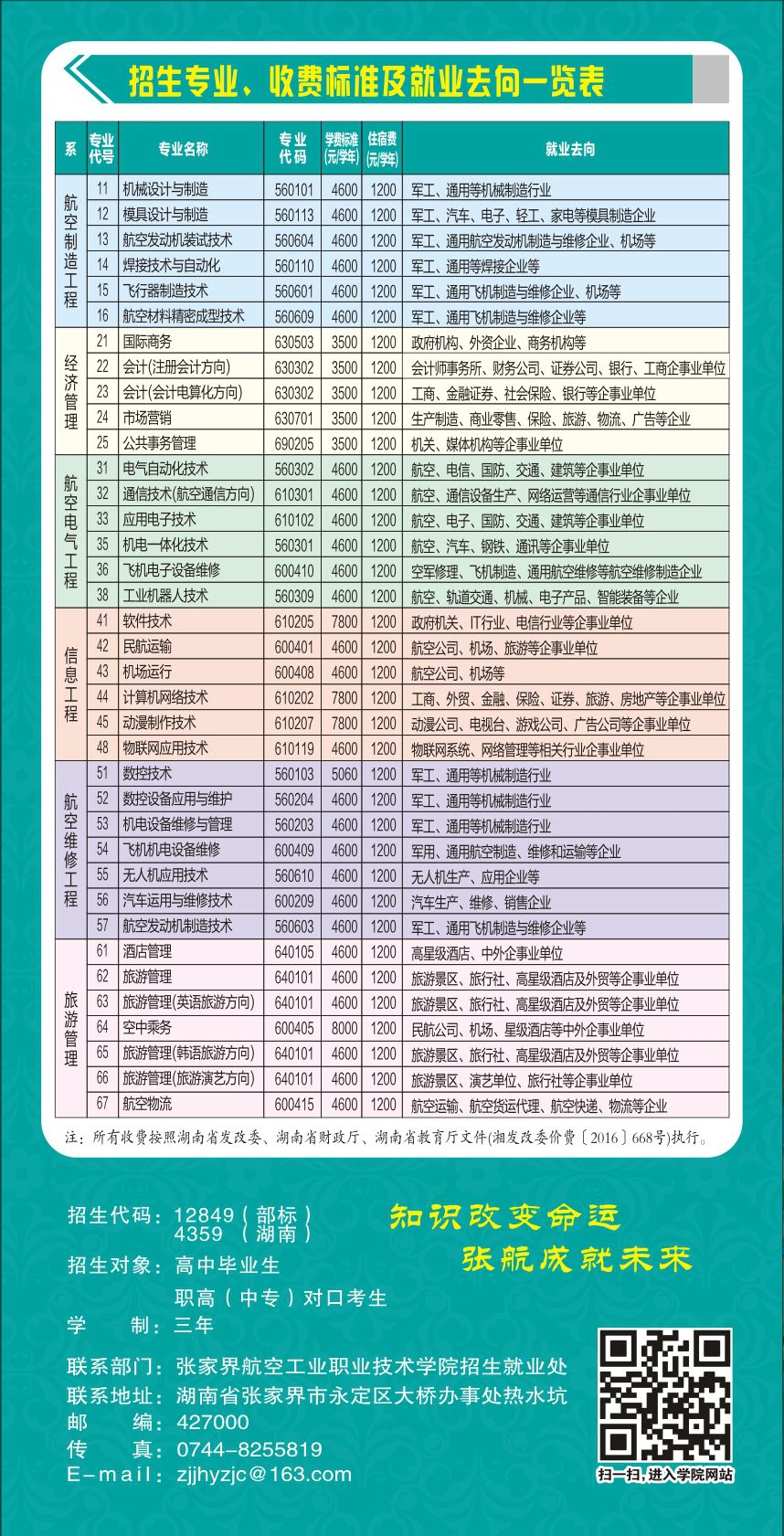张家界航空工业职业技术学院2017年招生章程