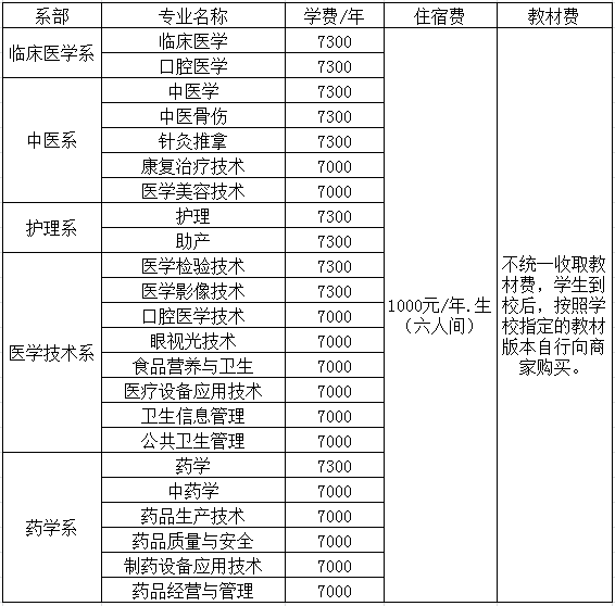 重庆三峡医药高等专科学校2017年新生各专业收费标准(元/生.学年)