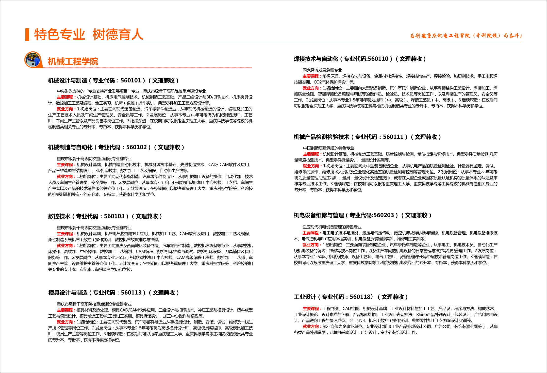 重庆机电职业技术学院2017年招生简章