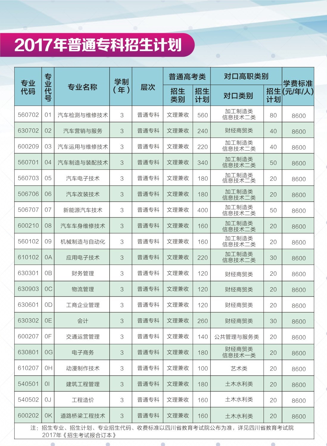 四川汽车职业技术学院2017年招生简章