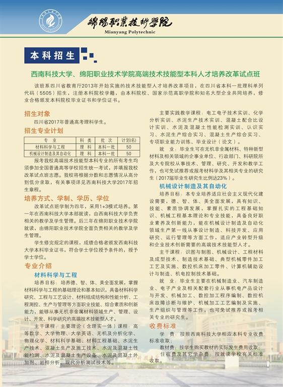四川机电职业技术学院2017年三年制普通高职招生简章