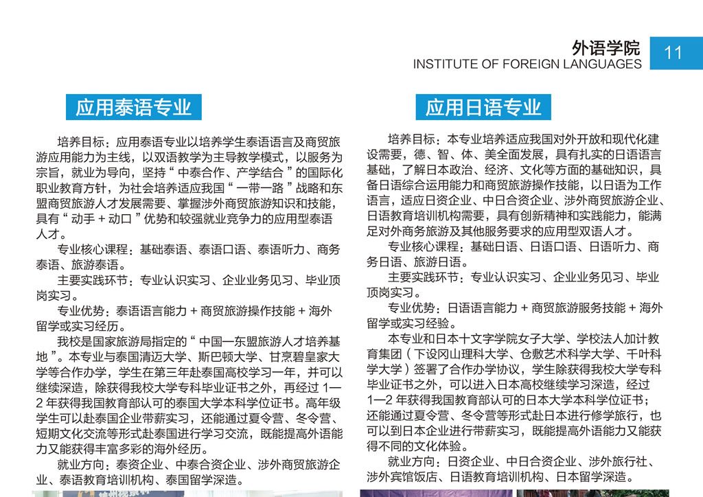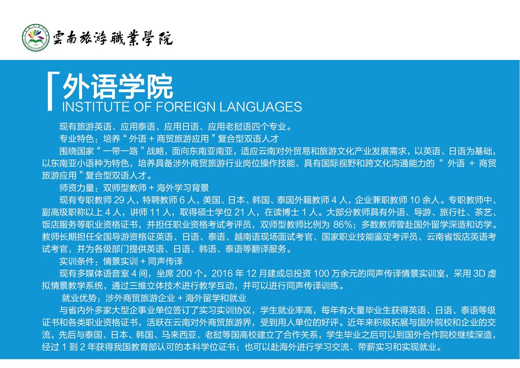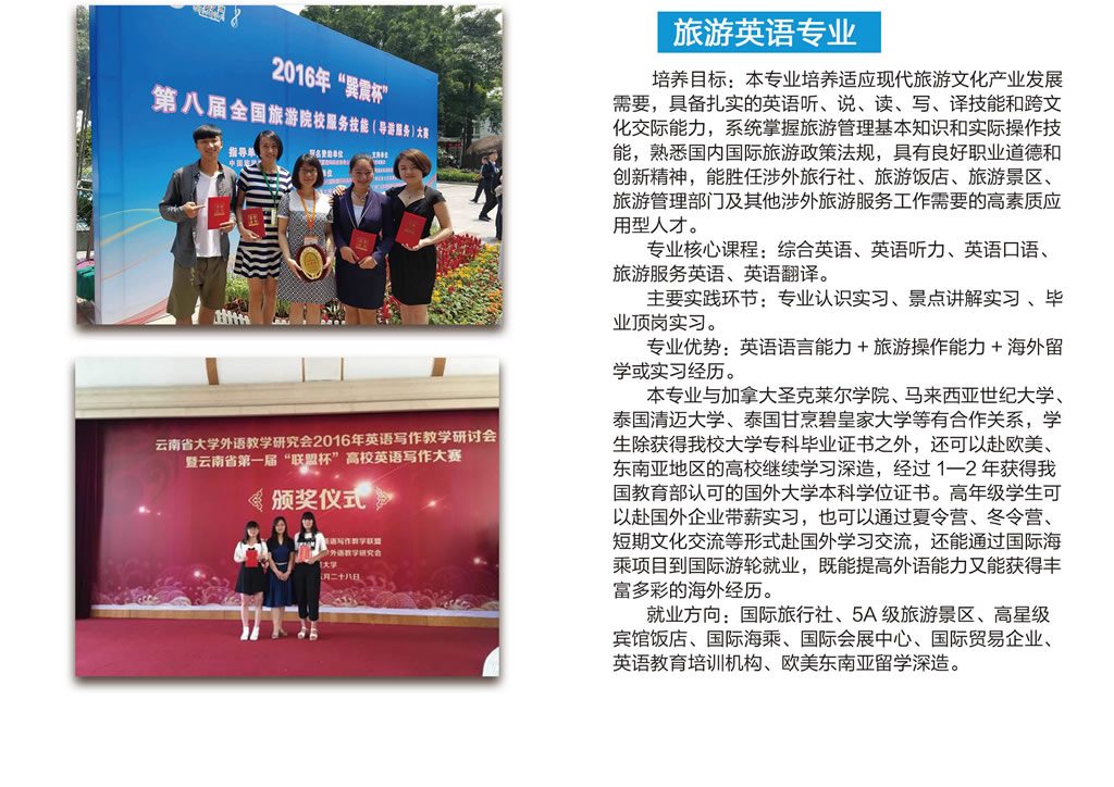 云南旅游职业学院外语学院专业