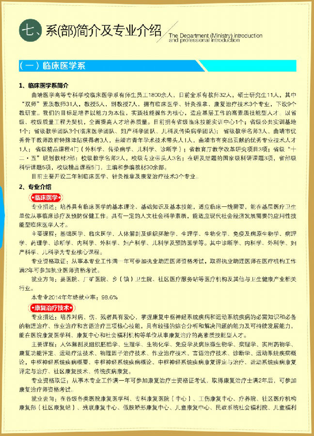 曲靖医学高等专科学校临床医学系专业