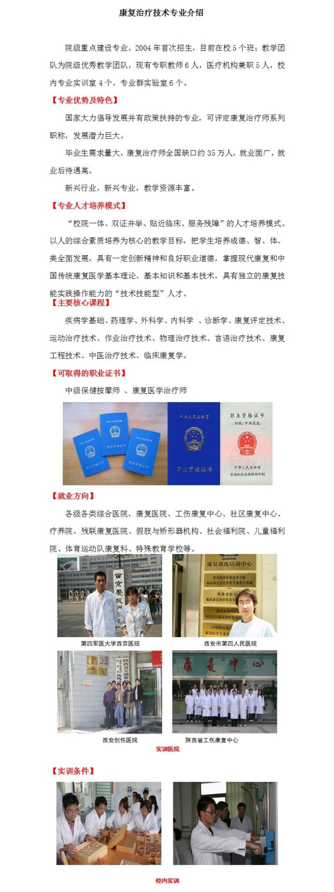陕西能源职业技术学院医学技术系专业