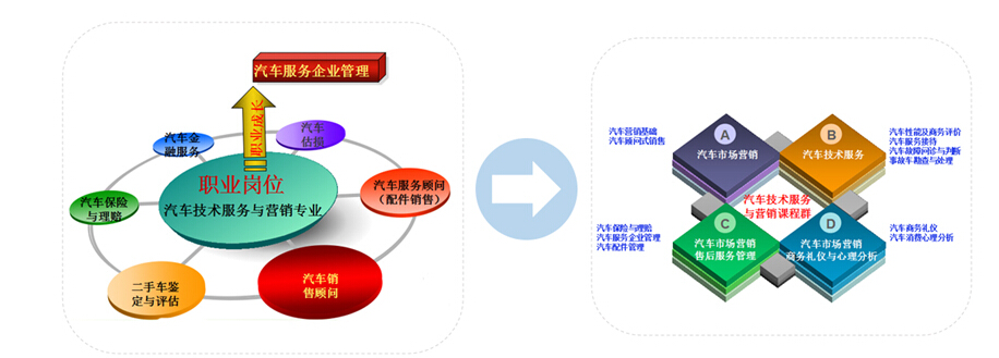 具有汽车行业相应岗位必备的基本理论、专业知识和技能,具有良好的职业道德和创新精神,能胜任现代汽车及配件的营销、售后服务、维修接待、汽车保险与理赔以及经营管理等工作,适应生产、建设、管理、服务第一线需要的“能胜岗+能转岗”的高素质、可持续发展的技术技能型人才。