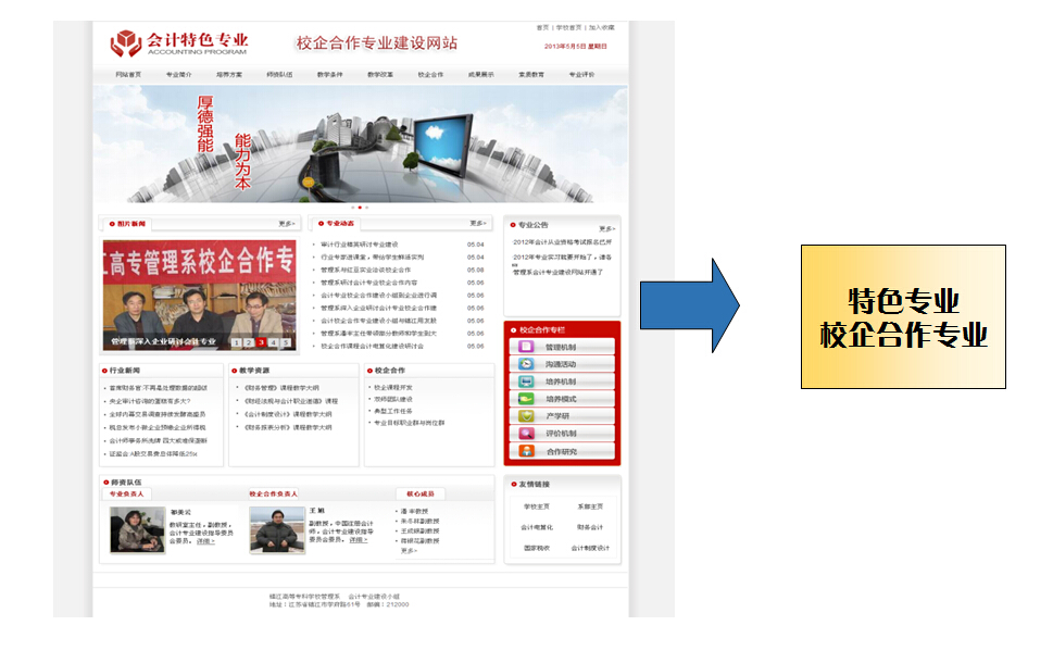 我校会计专业创建于1983 年,具有悠久的办学历史,积累了丰富的办学经验,是全省高职高专老牌专业。三十多年来,已培养了1 万多名大专毕业生,先后与苏州大学、江苏大学和南京财经大学联合办学,培养本科学生300 多人,为社会各行各业输送了大批优秀的技术技能型会计专门人才,为镇江市及江苏省地方经济社会发展做出了积极的贡献。