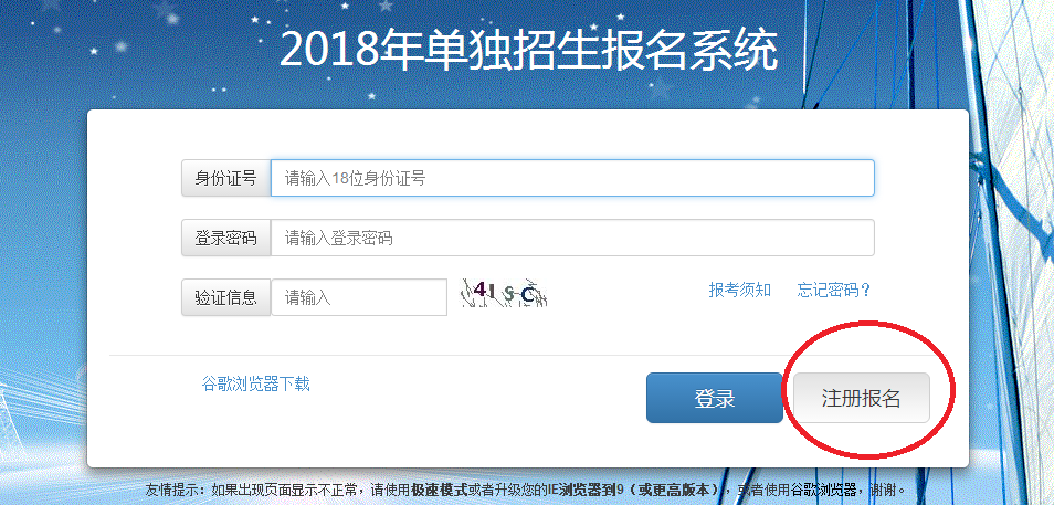 1、输入http://zsxx.hbxytc.cn/登陆学院招生信息网。点击单招报名,登陆报名系统。