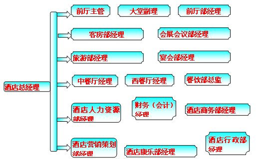 本专业学生职业范围主要面向国际国内四星级以上的酒店,主要从事餐饮、客房、前厅、营销、财务、人力等岗位和旅游局相关管理的工作。参下图: