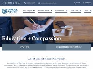 塞缪尔·梅里特大学(Samuel Merritt University)成立于1909年,是一所非营利性私立专业高等教育机构,位于加利福尼亚州中等城市奥克兰市(人口25万-49万9999人)的城市环境中。Samuel Merritt University (SMC)是由WASC高级学院和大学委员会正式认可的一所小型(排名范围:2000 - 2999名学生)男女同校的美国高等教育机构。萨缪尔梅里特大学(SMC)提供课程和项目,导致官方承认的高等教育学位,如在几个研究领域的学士学位,硕士学位。详情请参阅下面的uniRank学位水平和学习领域矩阵。这所拥有111年历史的美国高等教育机构有一个基于入学考试和学生过去的学术记录和成绩的选择性录取政策。录取率在50-60%之间,这使得这所美国高等教育机构成为一所普通的选择机构。欢迎国际学生申请入学。SMC还为学生提供一些学术和非学术设施和服务,包括图书馆、财政援助和/或奖学金、在线课程和远程学习机会,以及行政服务。