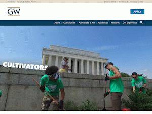 乔治华盛顿大学(George Washington University)成立于1821年,是一所非营利性私立高等教育机构,位于哥伦比亚特区首都华盛顿(人口50 - 100万)的市区。该机构还在以下地点设有分校:芒特弗农,阿什本。乔治华盛顿大学(GWU)由美国中部高等教育委员会正式认证,是一所非常大的(排名范围:3万-34,999名学生)男女同校的美国高等教育机构。乔治华盛顿大学(GWU)提供官方认可的高等教育学位的课程和项目,如预科学士学位(即证书,文凭,副学士或基础学位),学士学位,硕士学位,几个研究领域的博士学位。详情请参阅下面的uniRank学位水平和学习领域矩阵。这所有着199年历史的美国高等教育机构有一个基于入学考试和学生过去的学术记录和成绩的选择性录取政策。录取率范围是40-50%,这使得美国高等教育机构是一个平均选择的机构。国际申请者有资格申请入学。乔治华盛顿大学还为学生提供一些学术和非学术设施和服务,包括图书馆、住房、体育设施、财政援助和/或奖学金、海外学习和交换项目、在线课程和远程学习机会,以及行政服务。