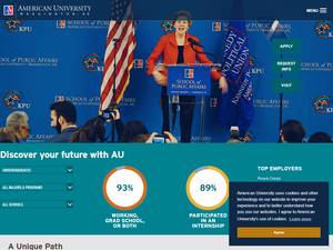 美国大学成立于1893年,是一所非营利性的私立高等教育机构,位于哥伦比亚特区华盛顿(人口50 - 100万)的郊区。美国大学(AU)由美国中部高等教育委员会正式认证,是一所大型的(在伊朗排名范围:15000 - 19999名学生)男女同校的美国高等教育机构,正式隶属于基督教和卫理公会教。美国大学(AU)提供官方认可的高等教育学位的课程和项目,如学士前学位(即证书、文凭、副学士或基础学位)、学士学位、硕士学位、几个领域的博士学位。详情请参阅下面的uniRank学位水平和学习领域矩阵。这所拥有127年历史的美国高等教育机构有一个基于入学考试和学生过去的学术记录和成绩的选择性录取政策。录取率在30-40%之间,这使这所美国高等教育机构成为一个非常挑剔的机构。国际申请者有资格申请入学。非盟还为学生提供一些学术和非学术设施和服务,包括图书馆、住房、体育设施、财政援助和/或奖学金、海外学习和交换项目、在线课程和远程学习机会,以及行政服务。