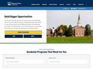 布埃纳维斯塔大学(Buena Vista University)成立于1891年,是一所非营利性私立高等教育机构,位于爱荷华州风暴湖(Storm Lake)大镇的农村地区(人口范围为10000 - 49999人)。布埃纳维斯塔大学(BVU)由高等教育委员会正式认证,是一所小型(招生范围:2000 - 2999名学生)男女同校的美国高等教育机构,正式隶属于基督教长老会宗教。布埃纳维斯塔大学(BVU)提供课程和项目,导致官方承认的高等教育学位,如在几个研究领域的学士学位,硕士学位。详情请参阅下面的uniRank学位水平和学习领域矩阵。这所拥有129年历史的美国高等教育机构有一个基于入学考试和学生过去的学术记录和成绩的选择性录取政策。录取率在50-60%之间,这使得这所美国高等教育机构成为一所普通的选择机构。欢迎国际学生申请入学。北京大学还为学生提供一些学术和非学术设施和服务,包括图书馆、住房、体育设施、财政援助和/或奖学金、海外学习和交换项目、在线课程和远程学习机会,以及行政服务。