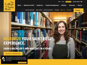 圣罗斯学院成立于1920年,是一所非营利性私立高等教育机构,位于纽约奥尔巴尼市(人口范围为50000-249999人)的城市环境中。圣罗斯学院(College of Saint Rose)是由美国中部各州高等教育委员会正式认可的一所小型男女同校的美国高等教育机构,正式隶属于基督教。圣罗斯学院提供获得官方认可的高等教育学位的课程和计划,如若干研究领域的学士学位、硕士学位。有关更多详细信息,请参见下面的uniRank学位等级和学习领域矩阵。这所拥有100年历史的美国高等教育机构根据入学考试和学生过去的学习成绩和成绩实行选择性录取政策。入学率在80-90%之间,这使得美国高等教育机构成为选择性最低的机构。国际申请人有资格申请入学。圣罗斯学院还为学生提供若干学术和非学术设施和服务,包括图书馆、住房、体育设施、经济援助和/或奖学金、出国留学和交流计划、在线课程和远程学习机会,以及行政服务。