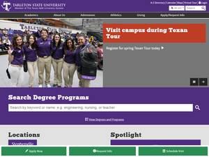 塔尔顿州立大学成立于1899年,是一所非营利性公立州立高等教育机构,位于德克萨斯州斯蒂芬维尔(人口范围为10000-49999人)小镇的农村地区。该学院还在以下地点设有分校:基林、沃思堡、瑟伯、格兰伯里。塔勒顿州立大学(TSU)是一所规模较大的美国男女同校高等教育机构(uniRank招生范围:10000-14999名学生)。塔尔顿州立大学(TSU)提供获得官方认可的高等教育学位的课程和计划,如若干研究领域的学士前学位(即证书、文凭、副学士或基础)、学士学位、硕士学位、博士学位。有关更多详细信息,请参见下面的uniRank学位等级和学习领域矩阵。这所拥有121年历史的美国高等教育机构根据入学考试和学生过去的学习成绩和成绩实行选择性录取政策。入学率在50-60%之间,这使得这家美国高等教育机构成为一所中等水平的选择性机构。国际申请人有资格申请入学。TSU还为学生提供一些学术和非学术设施和服务,包括图书馆、住房、体育设施、经济援助和/或奖学金、留学和交流计划、在线课程和远程学习机会,以及行政服务。