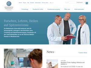因斯布鲁克医科大学(Medizinische universit&aum; t Innsbruck)成立于2004年,是一所非营利性公立高等教育机构,位于蒂罗尔(Tyrol)的小城市因斯布鲁克(Innsbruck,人口50,000-249,999居民)的城市环境中。奥地利联邦教育科学研究部(Bundesministerium f&udung, Wissenschaft and Forschung, Österreich)正式承认,因斯布鲁克医科大学(MUI)是一所小型(uniRank招生范围:2000 - 2999名学生)男女同校的奥地利高等教育机构。因斯布鲁克医科大学(MUI)提供课程和项目,导致官方承认的高等教育学位,如在几个研究领域的博士学位。详情请参阅下面的uniRank学位水平和学习领域矩阵。这所拥有16年历史的奥地利高等教育机构有一个基于入学考试的选择性录取政策。欢迎国际学生申请入学。学校还为学生提供多种学术和非学术设施和服务,包括图书馆、体育设施、出国留学和交流项目以及行政服务。