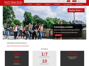 柏林巴德学院成立于1999年,是一所私立高等教育机构,位于柏林大都市(人口范围为1000000-5000000)。柏林巴德学院(Bard College Berlin)是一所规模非常小(uniRank招生范围:250-499名学生)的男女同校德国高等教育机构,由柏林Senatskanzlei Wissenschaft und Forschung(柏林科学和研究参议院总理府)正式承认。柏林巴德学院(Bard College Berlin)提供课程和计划,在多个研究领域获得官方认可的高等教育学位。有关更多详细信息,请参见下面的uniRank学位等级和学习领域矩阵。柏林巴德学院还为学生提供一些学术和非学术设施和服务,包括图书馆以及行政服务。