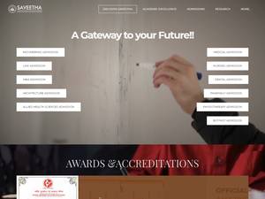 萨维塔医学和技术科学研究所成立于2005年,是一所私立高等教育机构,位于泰米尔纳德邦金奈大城市(人口超过500万)的农村地区。萨维塔医学和技术科学研究所是一所男女同校的印度高等教育机构,得到印度大学教育委员会的正式认可。Saveetha医学和技术科学研究所提供课程和项目,在多个研究领域获得官方认可的高等教育学位。有关更多详细信息,请参见下面的uniRank学位等级和学习领域矩阵。Saveetha医学和技术科学研究所还为学生提供一些学术和非学术设施和服务,包括图书馆以及行政服务。