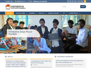Satya Wiyata Mandala大学(Satya Wiyata Mandala University)成立于2004年,是一所私立高等教育机构,位于巴布亚小城市纳比雷(人口范围为50000-249999人)。Satya Wiyata Mandala大学是一所规模较小的大学(uniRank招生范围:2000-2999名学生),由印度尼西亚共和国国家研究与技术部(研究与技术部/印度尼西亚共和国国家研究与创新署)Kementerian Riset and Teknologi/Badan Riset dan Inovasi National正式认可男女同校的印度尼西亚高等教育机构。Satya Wiyata Mandala大学提供课程和项目,在几个研究领域获得官方认可的高等教育学位。有关更多详细信息,请参见下面的uniRank学位等级和学习领域矩阵。曼荼罗大学还为学生提供一些学术和非学术设施和服务,包括图书馆以及行政服务。