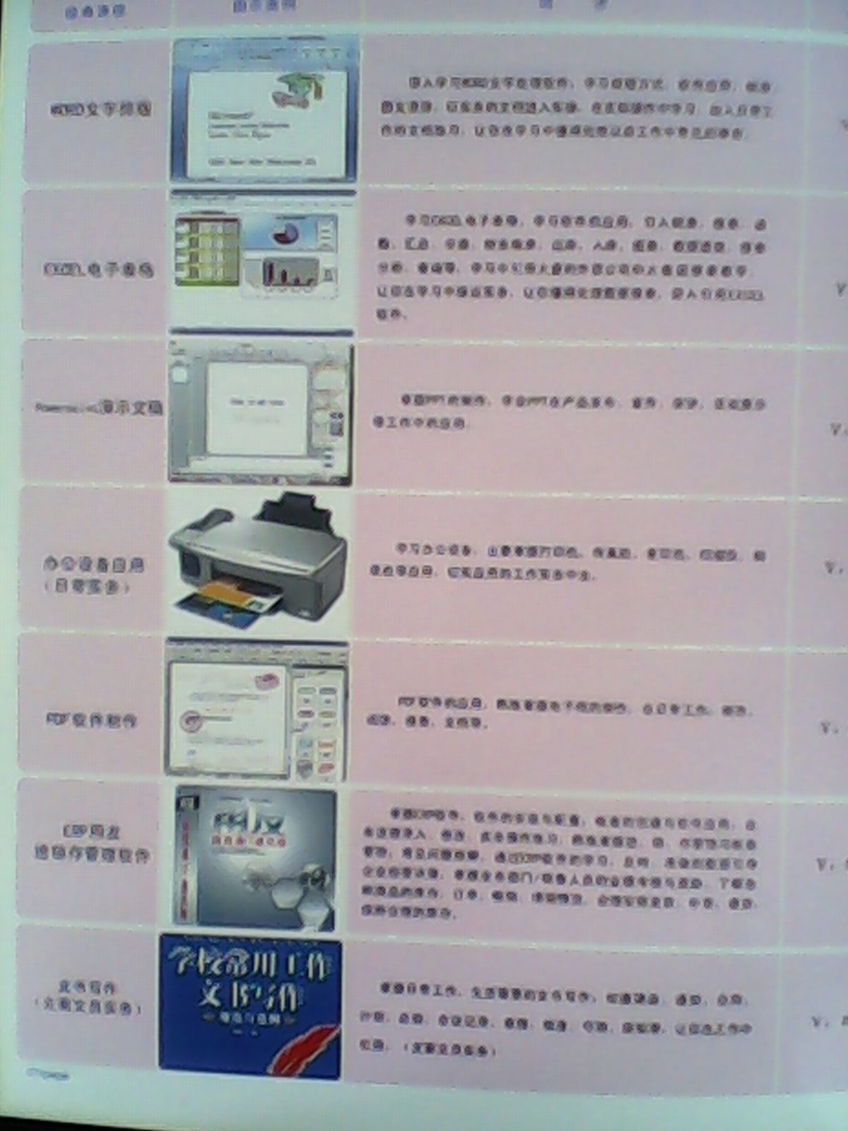 培养目标:可以从事各类公司:人事、前台、办公室文员、仓库管理、财务人员工作。