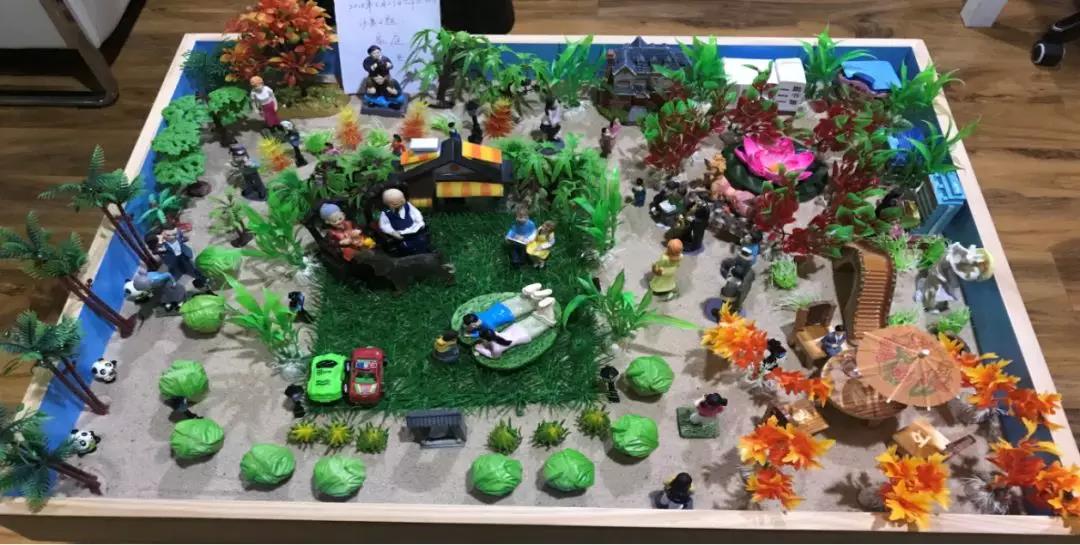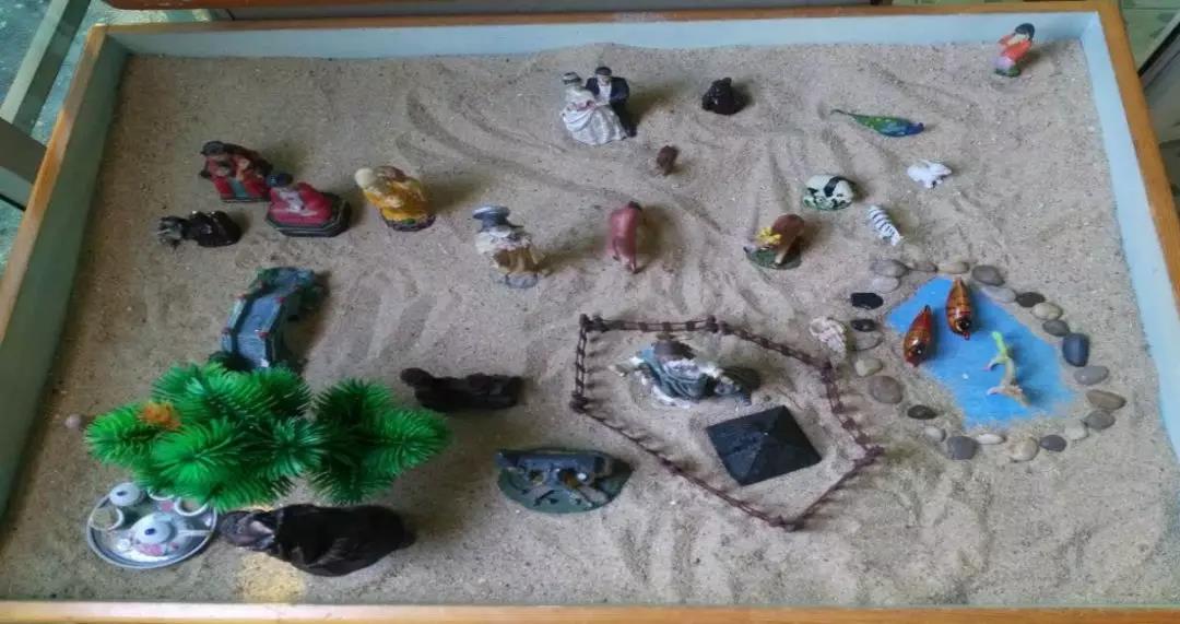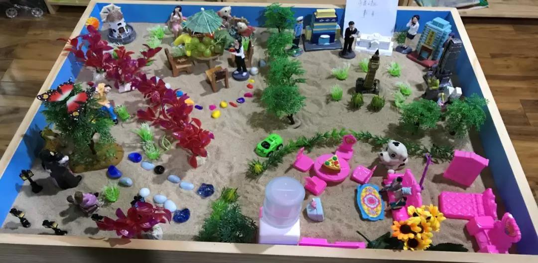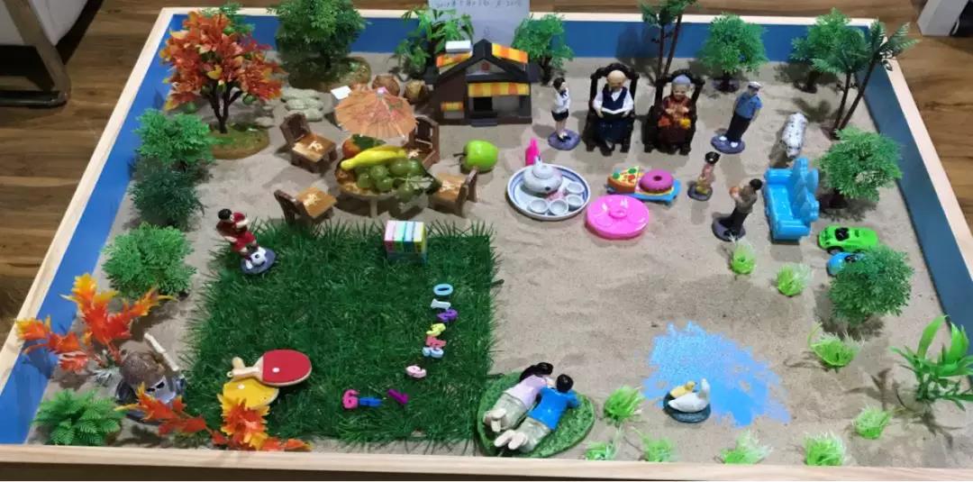 给每一个孩子一个沙盘,并配备诸多植物、动物、建筑、人物等模型,供其在沙盘进行摆放,最大程度塑造自己心目中喜欢的场景。