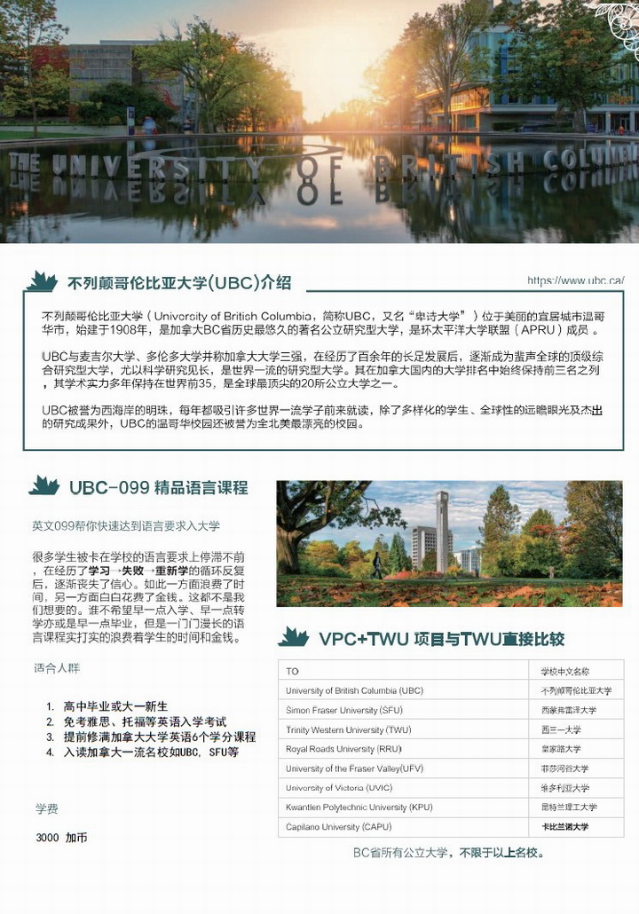 UBC不列颠哥伦比亚大学预科课程(099 语言)