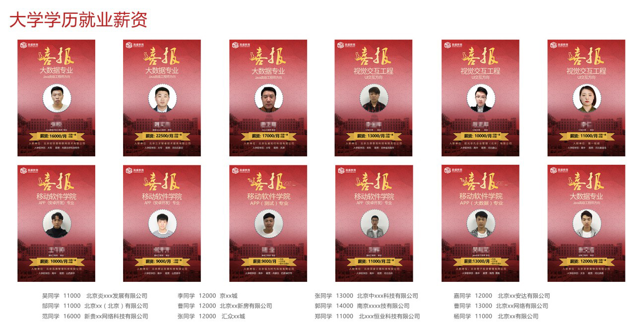 2、我们针对每个学员个人情况进行专业的职业规划,确保每个学员达到高新就业。