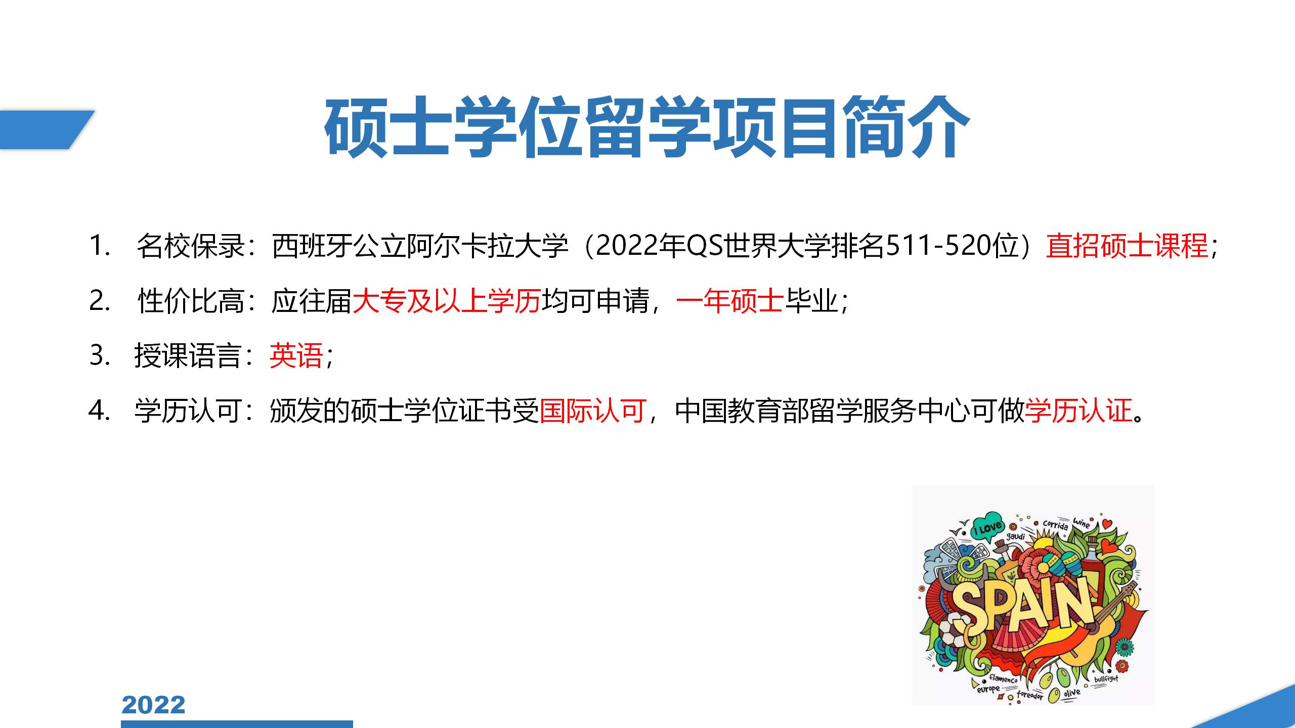 阿尔卡拉大学专本升硕士 1年学制 中留服认证