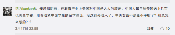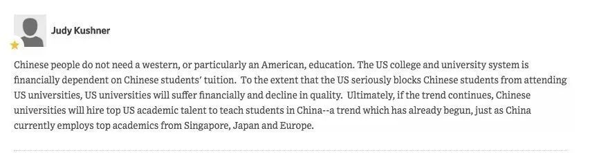 也有人觉得其实中国人根本就不需要到美国留学,限制他们只会让大学财政出问题。