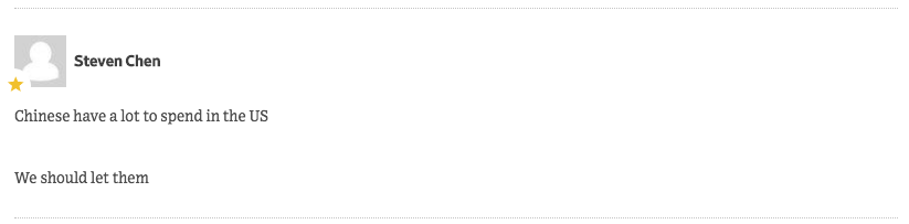 有人就觉得中国人能在美国花好多钱,应该让他们来。