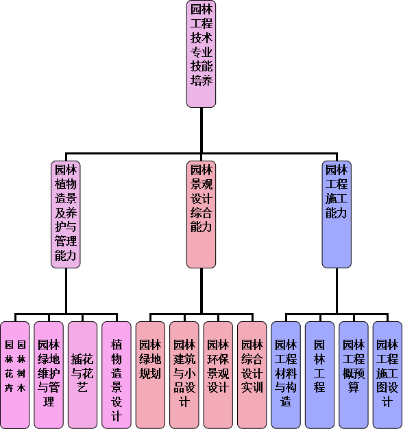 (1)主要课程:园林设计素描、园林设计速写、园林设计色彩、园林景观效果图表现技法、园林CAD、园林制图、园林测量、园林花卉、园林树木、园林艺术、园林绿地维护与管理、计算机辅助园林设计(Photoshop+3DS-MAX)、园林绿地规划、园林景观设计、园林工程、园林工程招投标与概预算、园林建筑与小品设计、插花与花艺设计、园林植物造景设计、园林综合考察实训、园林综合设计实训等。