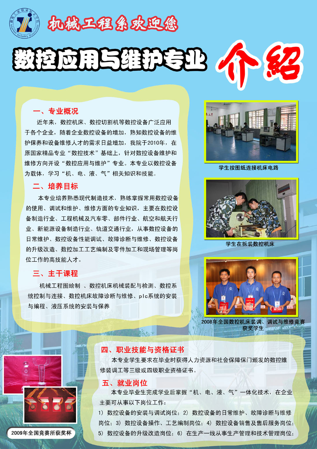 培养目标:本专业培养熟练掌握工程运用与维护专业必备的理论知识和技能,具有现代工程机械装配、检测、调试和故障诊断的能力,主要在工程机械制造企业从事生产、管理、售后服务及为企业进行海外拓展的高素质技能型人才。