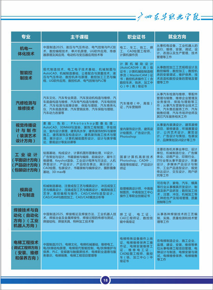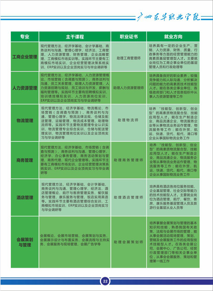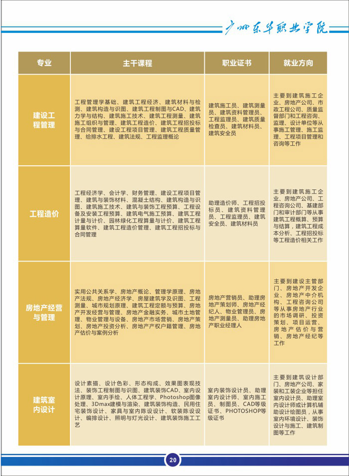 广州东华职业学院招生专业