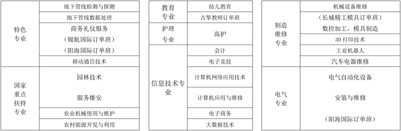 石家庄财经职业技术学院、河北软件职业技术学院、河北青年管理干部学院、保定幼儿师范高等专科学校、石家庄理工职业学院、石家庄工程职业学院在我校建立中高职对接生源基地,从我校毕业的学生可以直接进入高校进行深造,颁发全日制毕业证,与参加高考进入的学生享受同等待遇。这一举措给我校学生提供了进一步提升的广阔空间。