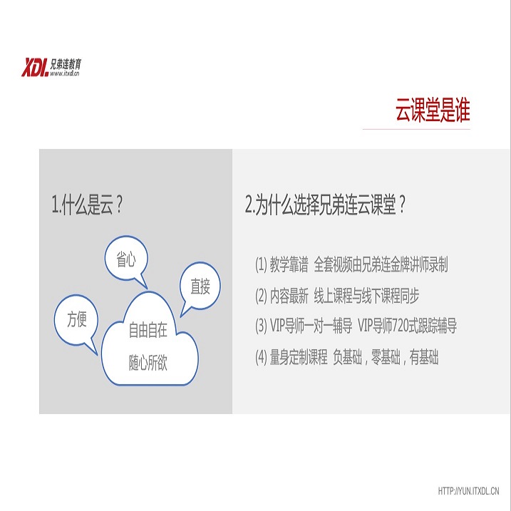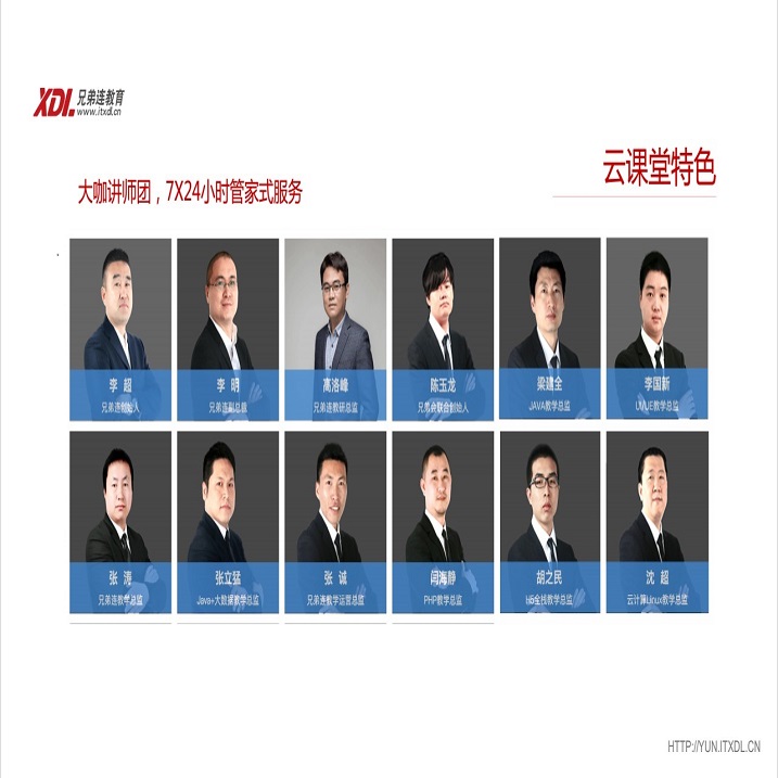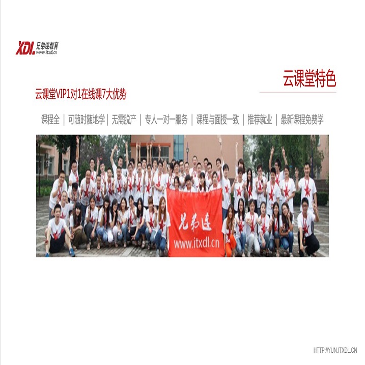 兄弟连教育,现已开设PHP、JavaEE、UI/UE、HTML5、大数据、Linux/云计算、Python+人工智能、网络营销等众多学科,累计培养数万名学员。兄弟连坚持“教学靠谱、变态严管、让学习成为一种习惯,职业素养课贯穿始终”的办学理念,提供24小时开放机房的教育机构。