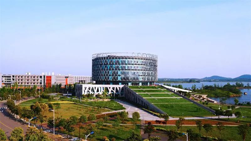 长江大学武汉校区湖光山色秀美、建筑现代大气