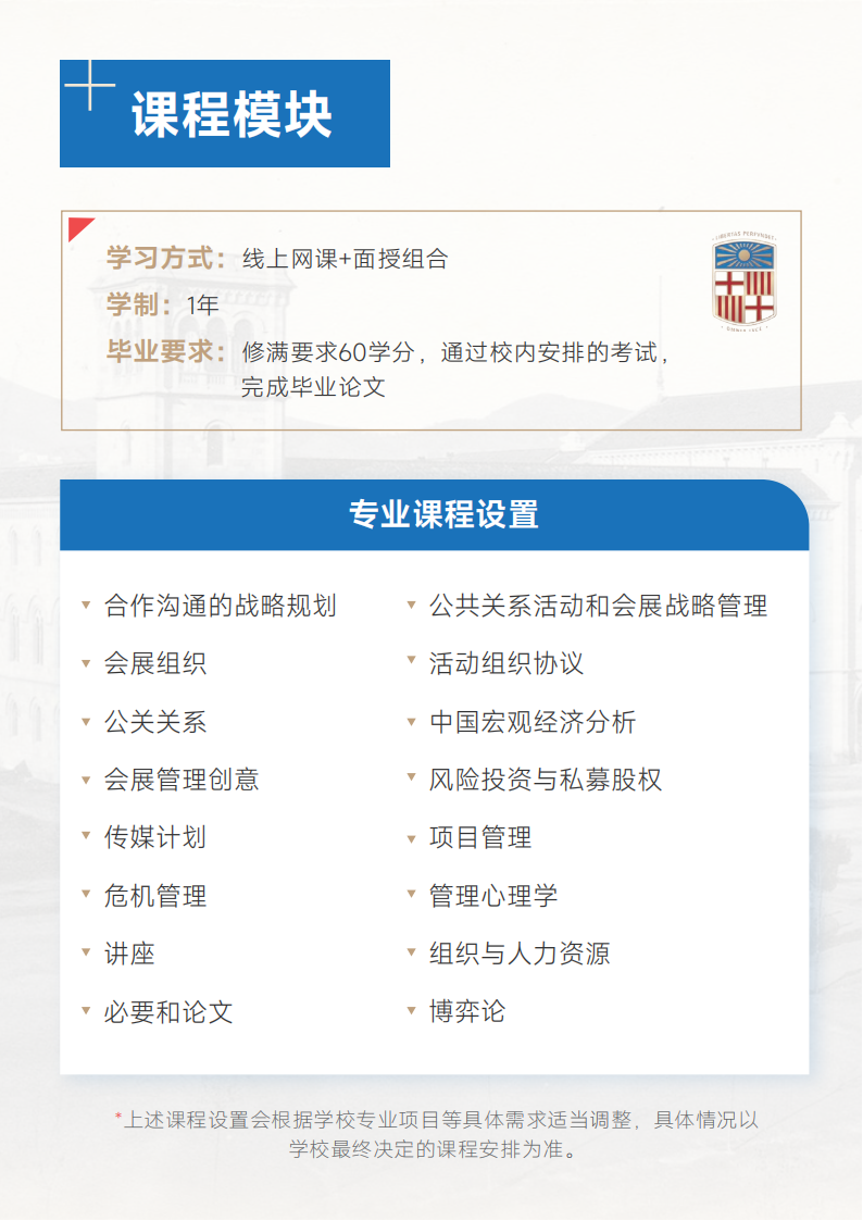 上课形式:现有硕博项目教学模式采用网络教学&面授,学生通过手机段电脑端线上完成课程,休满学分后,拿到硕士学位证书。也可参加线下面授课程,休满学分后,拿到硕士学位证书。网络学与线下学习所拿毕业证书相同。