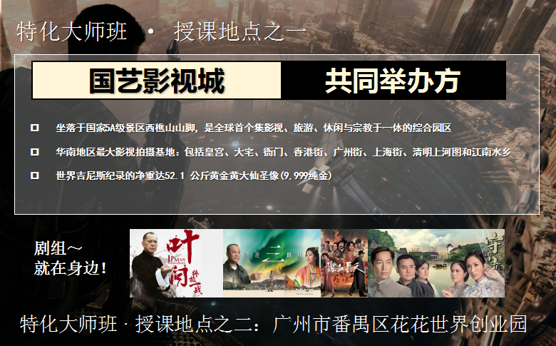 天娱广告旗下品牌(森魔)致力于电影特效,服务于电影产业领域的关联行业,为电影人和电影产业提供朂新的特效资讯和特效制作最尖端的技术、产品。并携手全国最有影响力的平台:国艺影视城、新片场、V电影等,共同合作构成最有实力的实体特效团队。 “好莱坞特效化妆班”是广州天娱广告有限公司携手国内外最高水准特化团队开设的特效制作化妆课程,地点设在南方地区最大的影视基地佛山南海国艺影视城。公司聘请好莱坞知名特化大师为班级的课程现场授业指导和编排,力求培养出国内最出色的特效化妆人才。 更多>>>