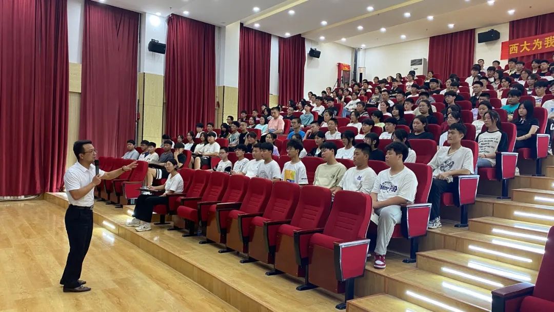 随着一阵阵热烈的掌声,一场特殊的课程在8月 24日晚西大明德楼4楼报告厅进行着。这个课程是专门为西大2023级新生准备的,作为青岛西大入学教育的一部分,西大第一堂人生教育课,正式拉开了帷幕。青岛西大技工学校教育教学副校长蒲刚亮同志,以“奔跑吧青春”为主题,亲自主讲了这堂特殊课程。数字信息系的2023级新生作为第一批学员参加了课程。